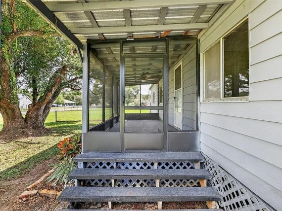 Step outside and enjoy the property from multiple outdoor living spaces, including a screened front porch/sunroom and covered areas ideal for relaxing or entertaining. The fully fenced yard is surrounded by mature trees and open green space, creating a setting that is perfect for pets, play, gardening, or simply enjoying the extra room.